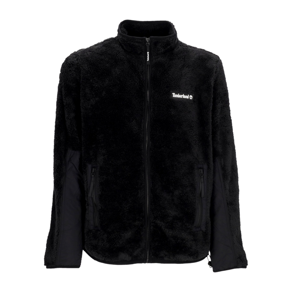 Giacca in sherpa con inserti sui gomiti, collo alto e chiusura con zip