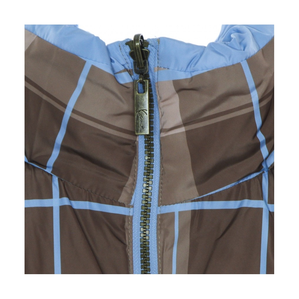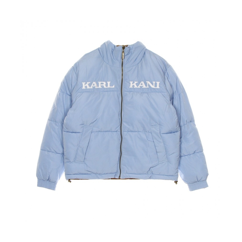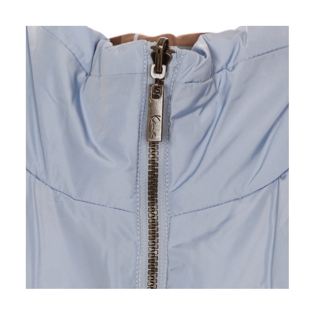 Piumino reversibile con chiusura centrale con zip, due tasche laterali in entrambi i lati, polsini elastici e fondo regolabile con cordino elastico